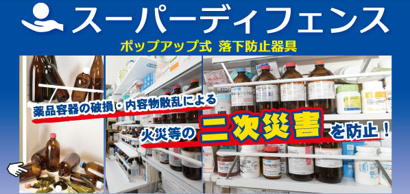 設備固定、棚ネット,棚からの落下防止対策、家具転倒防止の大石製作所