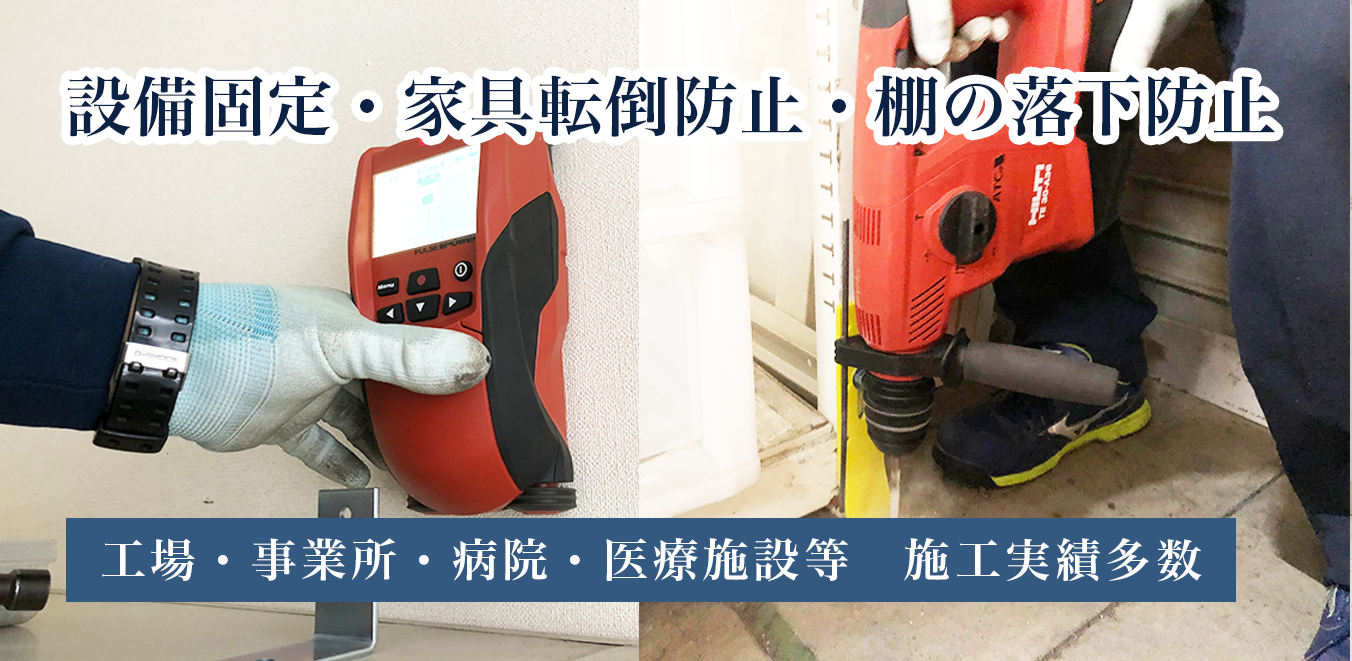 設備固定、棚ネット,棚からの落下防止対策、家具転倒防止の大石製作所